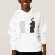 Unicorns are the stuff of legend, even in the world of chess. The dark knight sees what he wants - a spiked white angel - and nothing will stop him now. A black knight chess piece shows affection, in the form of rising red hearts, towards an ivory-white unicorn chess piece. An original, intellectual chess t-shirt for players, lovers, and dreamers.