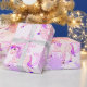 Unicorn Cute Girl Whimsical Pink Snowflakes Wrapping Paper
