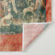 Here the injured unicorn is being held at bay by three hunters ready to pierce him with their lances. The furious animal reacts with a gruesome attack on a greyhound before him, almost tearing the dog's body apart. The horn-blowing hunter at the lower left wears a scabbard with the inscription AVE REGINA C[OELI] (Hail, Queen of the Heavens). He is often thought to represent the Archangel Gabriel, who announced to the Virgin Mary that she is to give birth to the Christ Child.