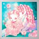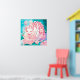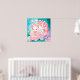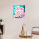 Two best friends...a sweet little girl and her pet unicorn. The background is beautiful turquoise blue and small pink roses float in the air. The girl has pink hair and is dressed all in pink, too, in a pretty girly two tiered dress. The unicorn has a pink mane, horn and hooves, and she is white. Magical stars enchant the scene.