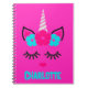 Unicorn Face Pink and Aqua| Custom Name Notebook