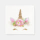 Unicorn paper napkins with adorable unicorn face with smiling gold eyelashes and gold floral horn on a choose your own color background. You can add text to personalize these cute unicorn napkins.