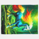 This fleece blanket has an artsy unicorn on it.
