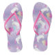 We believe in unicorns! This pair of flip flops features magical and unique digitally hand painted designs.