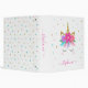 Unicorn Flowers Gold Glitter Personalized 3 Ring Binder