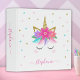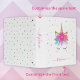 This personalized unicorn binder features a trendy unicorn face design with flowers, stars and faux gold glitter. Personalize it with your text.