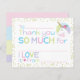 This thank you note card is in our "Magical Unicorn" design in pastel pink, purple, green, blue and gold foil dots. Click the customize button if you would like to move/scale the images and further modify the text! Variations of this design, additional colors, as well as coordinating products are available in our shop, zazzle.com/store/doodlelulu. Contact us if you need this design applied to a specific product to create your own unique matching item! Thank you so much for viewing a DoodleLulu by 2 june bugs design!