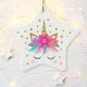 Unicorn Glitter Flowers Stars Personalized Ceramic Ornament