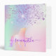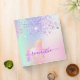 Unicorn glitter holographic name school 3 ring binder