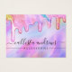 This girly and glamorous low hanging earring business logo display card is the perfect way to stylize your packaging and add your own personal flair and personality. It features faux printed sparkly unicorn rainbow color thick glitter drips on top of a holographic iridescent background. The typography is an elegant cursive script with a modern serif font to match. The color scheme includes pink, peach, blue, purple, yellow, and coral. It's chic, pretty, unique, and luxurious; the perfect way to advertise your business and stylize your marketing and advertisement material for your customers. (earring holes are printed markers only, puncturing must be completed by the customer)