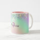 Unicorn Holographic Glitter mug - A trendy sparkling colored mug with mixed turquoise, pink and mauve glitter. You can personalize this mug by adding your name and initials.