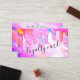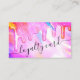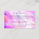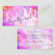 This girly and glamorous customer loyalty business card is perfect for a stylish and trendy professional businesswoman. It features faux printed sparkly unicorn rainbow color thick glitter drips on top of a holographic iridescent background. The typography is an elegant cursive script with a modern serif font to match. The color scheme includes a bright and vibrant neon pink, peach, blue, purple, yellow, and coral. It's chic, pretty, unique, and luxurious; the perfect way to advertise your business and stylize your marketing and advertisement material for your customers.