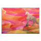 Brilliantly colored slightly abstract view of the Painted Desert with this majestic Unicorn standing on a ledge overlooking the view at Sunset.