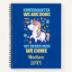 Cute adorable unicorn Notebook that says Kindergarten We Are Done, First Grade Here We Come"