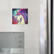 This magnet has an artsy unicorn design on it.