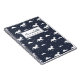 Unicorns, stars and puffy clouds in a dreamy midnight sky on whimsical personalized notebook.