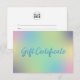 This gift certificate features the words "Gift Certificate" in faux blue glitter against a unicorn mix pattern background on the front.