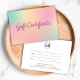 This gift certificate features the words "Gift Certificate" in faux pink glitter against a unicorn mix pattern background on the front.