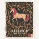 This magical notebook/journal features a unicorn with crimson a red mane and tail on a black background botanical and floral pattern. Personalize for your needs. You can find more matching products at my store.