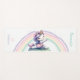 A chic, personalized yoga mat with a cute unicorn theme, featuring a watercolor painting of an adorable unicorn, on a yoga mat, in a warrior yoga pose. In the background, a pastel colored rainbow and gold stars (digital). A perfect gift for a girl, teen or woman - mom, your girlfriend, best friend or any special person in your life who loves yoga, unicorns and pastel colors, for a birthday, Christmas, Mother's Day or any occasion.