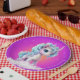 Unicorn on cloud with pink vibrant sky paper plates