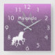 Unicorn on ombre ultra violet glitter and pink square wall clock