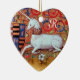 UNICORN PARCHMENT HEART MONOGRAM,RED RUBY GEMSTONE CERAMIC ORNAMENT
