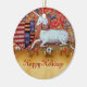 UNICORN PARCHMENT WITH RED RUBY GEMSTONE CERAMIC ORNAMENT