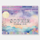 **** Ethereal MAGICAL SKY MOUNTAINS CELESTIAL with PUFFY CLOUDS and a happy RAINBOW design with a DIY option for the Name and motivational inspirational message on the back side. There are FLORAL touches barely visible are faint FLOWERS, The MOON is in the background.
