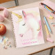 A girly notebook for school, journaling or diary. A soft, blush pink background, decorated with a cute pink watercolored unicorn. Personalize and add a name.