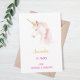 A cute unicorn greeting card. White background. Personalize and add a name, age and who it's from.