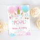 Unicorn Pool Party Pink Gold Birthday Invitation