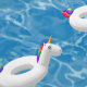 Decorate your bath or powder room with a cute inflatable unicorn pool toy floating on water.