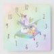 Unicorn Princess Diva Iridescent Rainbow Pastel Square Wall Clock