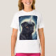 A stunning, digitally painted portrait featuring a stoic black pug transformed into the legendary Pug-nicorn. The artwork utilizes deep, rich blues and blacks contrasted with the warm amber glow of the eyes and the soft illumination of the moon and horn. The detailed fur texture and dreamlike, starry background make this a high-quality, eye-catching piece for any collector.