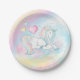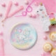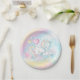Unicorn baby shower paper plates with sweet unicorn on a beautiful watercolor pastel rainbow, hearts and cloud background. These cute unicorn paper plates are easily customized with text. You can also change the background color.