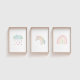 Unicorn, Rainbow, and Cloud Pastel Set of 3 Prints" is a delightful collection of prints that combines the whimsical elements of unicorns, rainbows, and clouds with a soft and pastel color palette. This set typically includes three individual prints featuring these enchanting motifs in gentle and soothing colors.