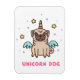 Image By Viaire | Shutterstock. Image ID: 722682502 | This design features a cute pug unicorn with a rainbow horn and wings.