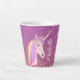Designed with trendy bright pink faux glitter sparkle background around the mug. The front has a white unicorn with pretty rainbow hair and flowers on top of her head. Customized with name in white calligraphy script lettering vertical on right side of unicorn. Makes an adorable gift idea for a girl's unicorn birthday party.