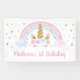This adorable design features a unicorn face with a pastel colored rainbow and faux gold glitter embellishments.