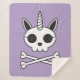 This graphic art piece combines the whimsical and the macabre, featuring a stylized skull with large, expressive eyes, a unicorn horn, and cat-like ears. As seen on Sophie's t-shirt, the skull is accompanied by crossbones, enhancing its playful yet gothic appeal. The design uses a simple black and white color scheme, which emphasizes the bold and graphic nature of the illustration. This unique blend of elements makes it a perfect choice for those who appreciate a blend of fantasy, dark humor, and minimalist art.