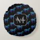 Unicorn Sparkles aqua blue ombre pattern Monogram Round Pillow