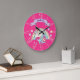 Unicorn & Sparkly Rainbow Custom Name on Hot Pink Large Clock