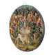 This unicorn tapestry is an enhanced reproduction of the "The Unicorn is Found" tapestry, which is the second tapestry of a series of seven medieval tapestries that showcases the mythical unicorn.The series is entitled "The Hunt of the Unicorn" which are also referred to as the Unicorn Tapestries". The tapestries were created from 1495-1505. This Unicorn is Found tapestry shows a group of medieval noblemen and hunters, as well as all kinds of ferocious lions and leopards. There is a unicorn at the front, a beautiful white unicorn, which has its horn pointed downward as it kneels. There is a medieval fountain between the unicorn and the huntsmen.