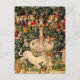 This unicorn tapestry is an enhanced reproduction of the "The Unicorn is Found" tapestry, which is the second tapestry of a series of seven medieval tapestries that showcases the mythical unicorn.The series is entitled "The Hunt of the Unicorn" which are also referred to as the Unicorn Tapestries". The tapestries were created from 1495-1505. This Unicorn is Found tapestry shows a group of medieval noblemen and hunters, as well as all kinds of ferocious lions and leopards. There is a unicorn at the front, a beautiful white unicorn, which has its horn pointed downward as it kneels. There is a medieval fountain between the unicorn and the huntsmen.