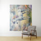 A tapestry showing a dreamy image of a white unicorn with a rainbow mane standing in a field of flowers. In the background are majestic mountains. The perfect gift to give those who love magical and mystical unicorns. Contains generative content.