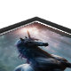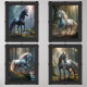A fanciful set of unicorns in framed wall art media.