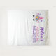 A photo backdrop tapestry personalized with your event details. Designed with a trendy pink unicorn. Adorned with a fancy floral headpiece. Whimsical butterflies flying around. Fake gold confetti sprinkled along the top.