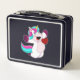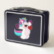 This is a standard metal lunchbox that appears to work just fine. We designed this box ourselves with an uploaded photo and custom text on the front and back. It looks absolutely beautiful except the front of the lunchbox is not centered like it shows in the photo. The print borders don't align with the inset flat part of the box where the preview photo online showed it perfectly centered in there. The back looks nice and centered though.