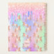 A trendy holographic colored background with unicorn and rainbow pastel colors in pink, purple, mint green. Decorated with drips in pink, purple and a golden colored unicorn pattern. Personalize and add a name and a year written with a girly modern hand lettered style script. Purple colored letters.